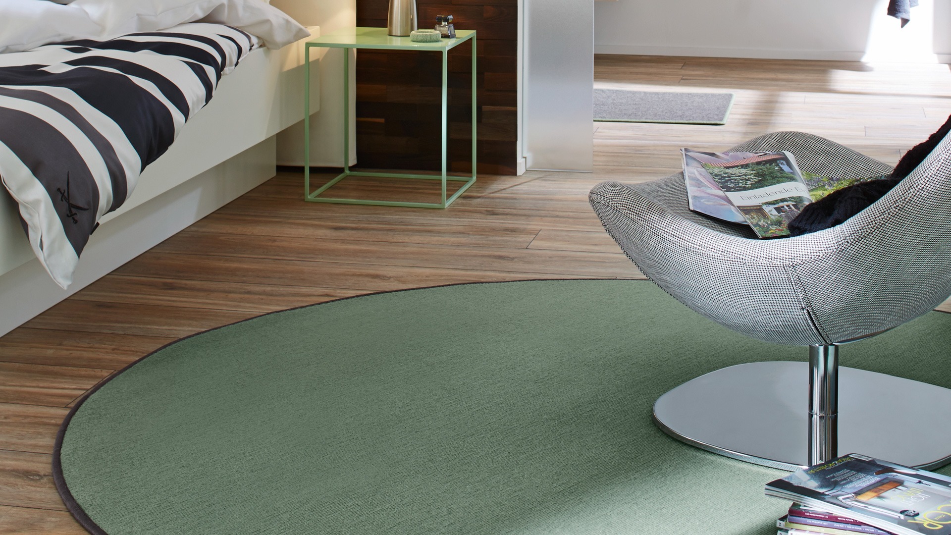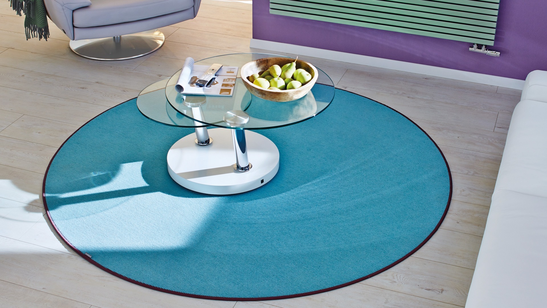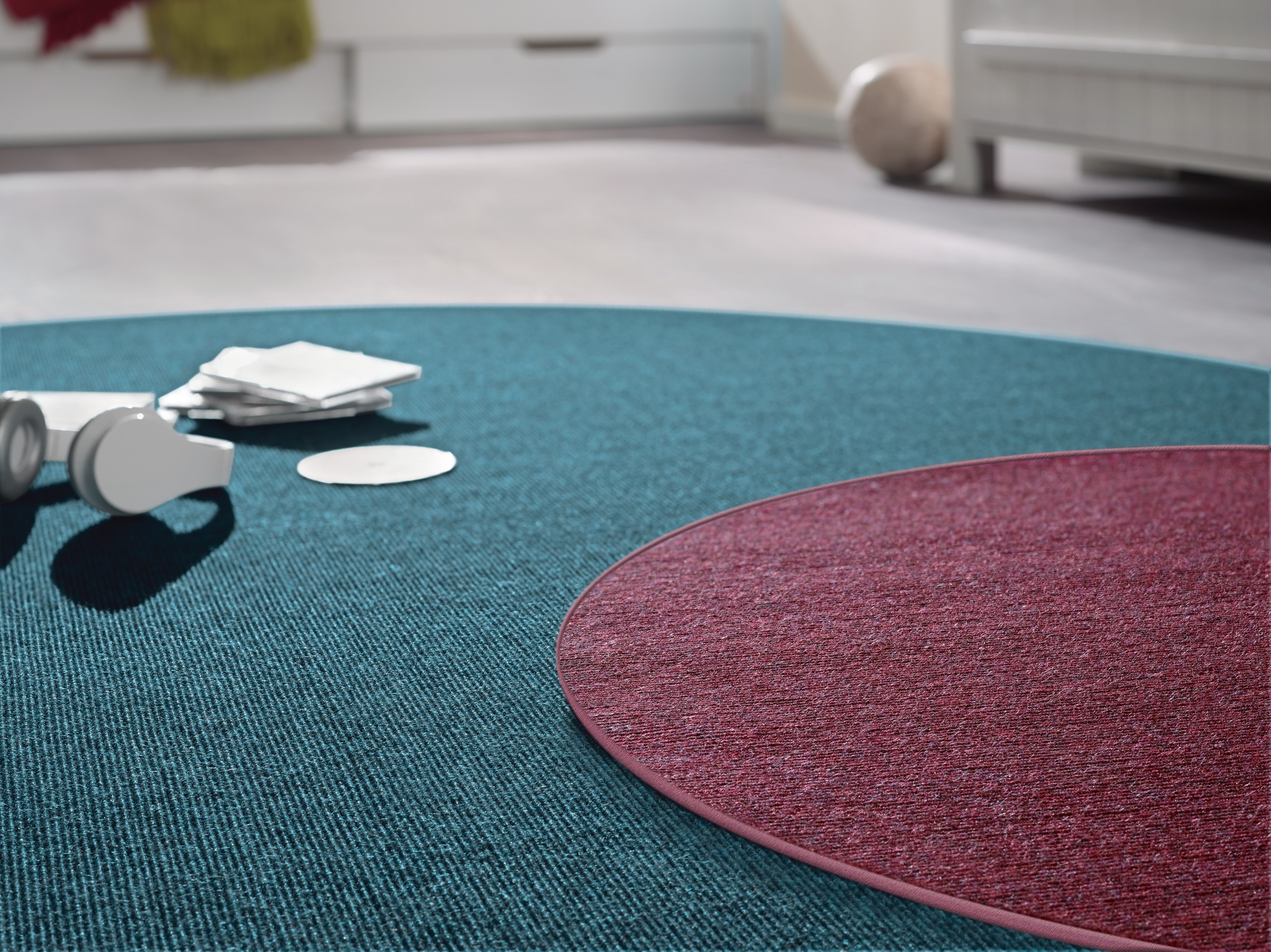 Runde Teppiche von Tretford mit farblich passender oder andersfarbiger Umkettelung sind eine praktische Lösung für mehr Behaglichkeit. Sie setzen nicht nur farbige Akzente, sondern sorgen für mehr Behaglichkeit und Fußwärme. Im Kinderzimmer sind runde Teppiche nicht nur Hingucker, sie schonen auch die Knie. Die Teppiche sind bis zu einer Breite/Durchmesser von 4 Meter lieferbar
